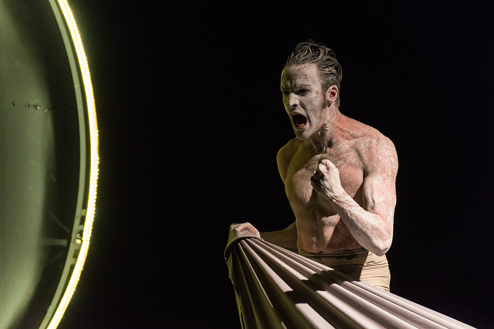 Rather than a theatrical adaptation, the work unfolds as a durational experience that examines collective ecstasy, violence and transformation through the body.