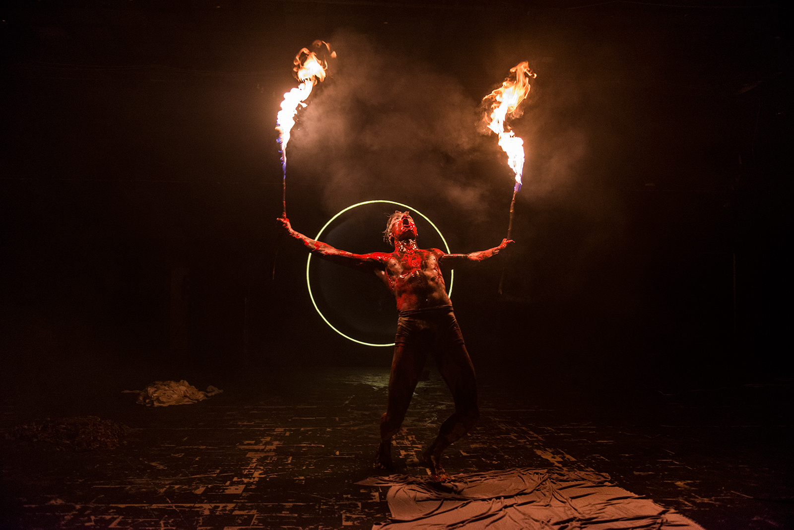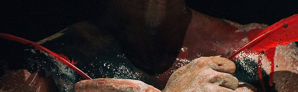 The performers engage in repetitive actions, rhythmic patterns and physical endurance, allowing the body to move beyond representation and into altered states.